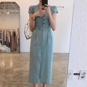 半袖スリムワンピース ワンピース ワンピドレス ロング ロング丈 袖あり 半袖 パフスリーブ Vネック スリム 細身 Iライン ウエストマーク 前開き 綿 かわいい 大人可愛い きれいめ シンプル カジュアル 大人 おしゃれ お洒落 レトロ 大人可愛い 大人女子 こなれ感 ラブリー キュート ガーリー 主役級 存在感 無地 春 夏 10代 20代 30代 レディース OL 通勤 学生 通学 デート お出かけ 女子会 休日 着回し 普段使い 韓国 韓国系 サイズ S M L 色展開 7627