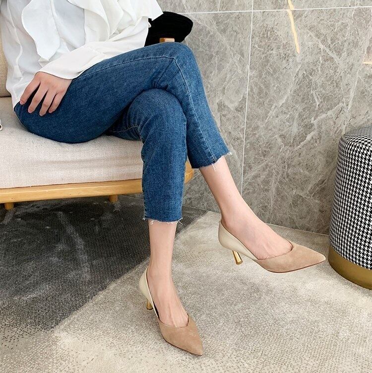 大人っぽさをプラスしてくれるポインテッドトゥのスエードパンプス?