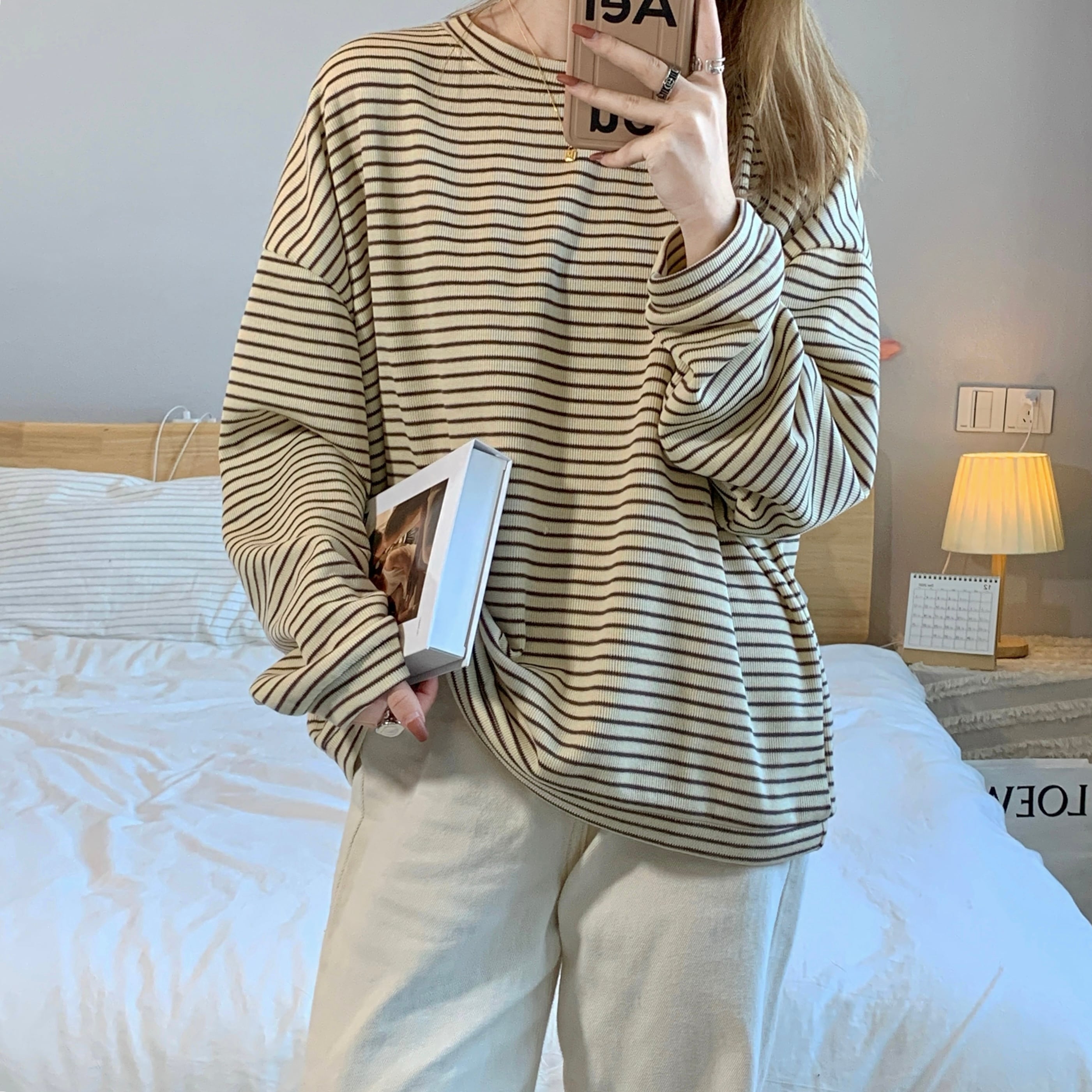 ざっくりとしたオーバーシルエットが可愛いボーダープルオーバー。