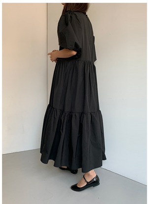 ふんわりフェミニンなシルエットのティアードワンピース。