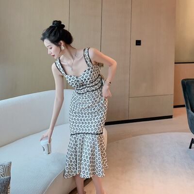 ワンピース ドレス キャミワンピ キャミソールワンピース 袖なし プリント 柄 膝下 ミモレ丈 ハイウエスト 切り替え マーメイド フレア スリム 細身 バックシャン 背中魅せ 背中開き 大人 カジュアル 上品 きれいめ 大人可愛い かわいい 可愛い 大人女子 おしゃれ お洒落 通勤 通学 学生 お出かけ デート 旅行 休日 普段着 普段使い レディース 10代 20代 夏 S M 7375