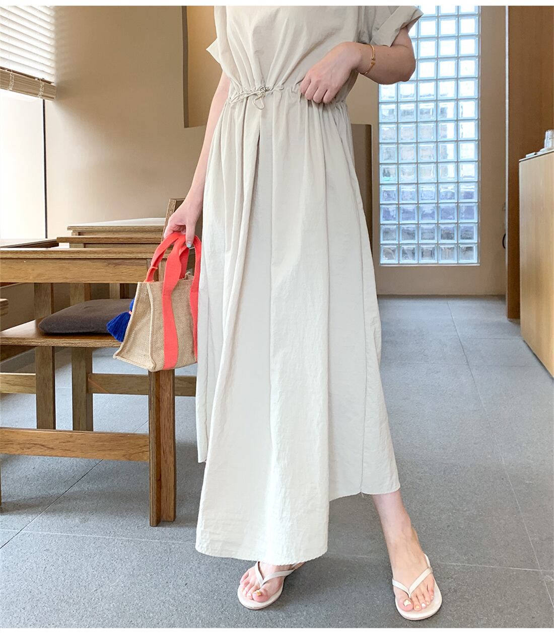 ウエスト絞りワンピース ワンピース フレアワンピース ロング ロング丈 マキシ マキシ丈 袖あり 半袖 ラウンドネック ウエストマーク 綿 ポリエステル かわいい 大人可愛い シンプル カジュアル 大人 おしゃれ お洒落 レトロ 大人可愛い 大人女子 こなれ感 ラブリー キュート ガーリー 主役級 存在感 無地 春 夏 10代 20代 30代 レディース 学生 通学 デート お出かけ 女子会 休日 着回し 普段使い 重ね着 韓国 韓国系 サイズ S M L XL 色展開 黒 ブラ 7682