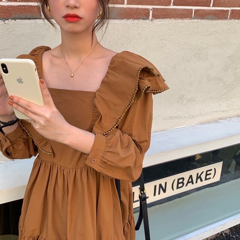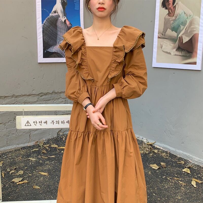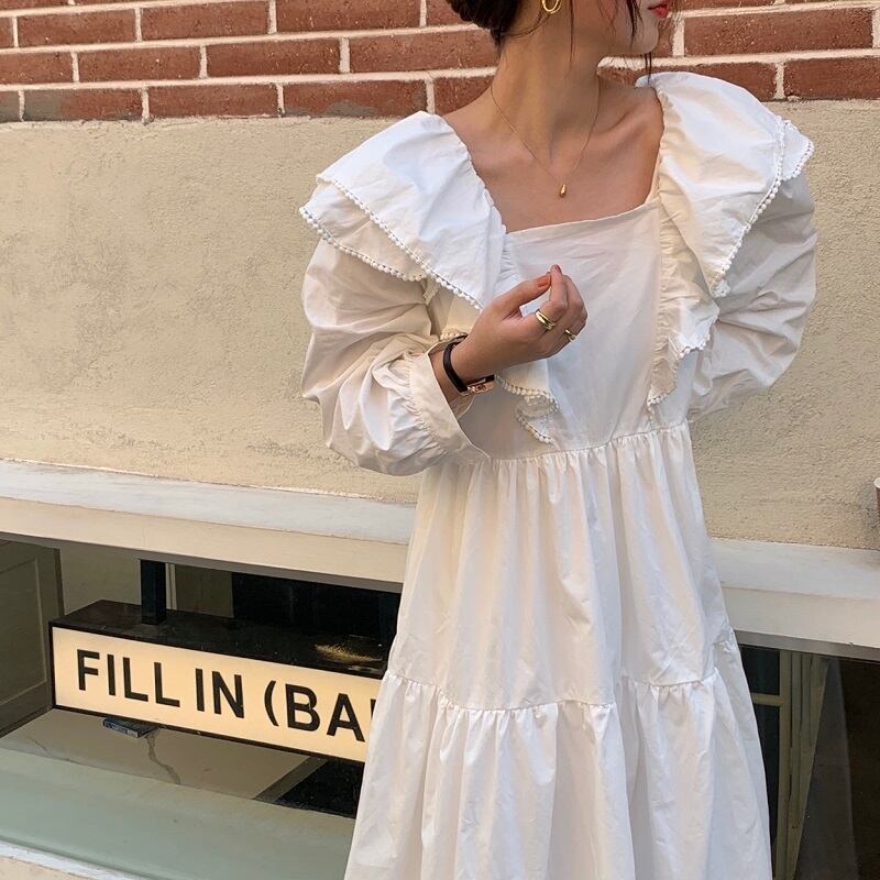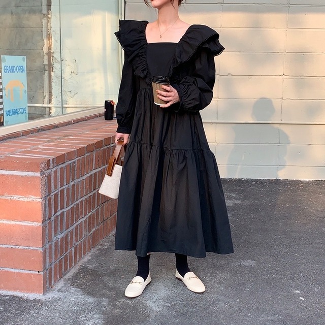 ティアードワンピース ドレス ワンピース 袖あり 長袖 膝下 ミモレ丈 ハイウエスト 切り替え スクエアネック 大きめ襟 襟付き シンプル 無地 ふんわり ゆったり ゆる ルーズ 大人 カジュアル フェミニン 大人可愛い かわいい 可愛い 大人女子 おしゃれ お洒落 通勤 通学 学生 お出かけ デート 旅行 休日 普段着 普段使い レディース 10代 20代 春 秋 ワンサイズ ブラック 黒 ホワイト 白 7387
