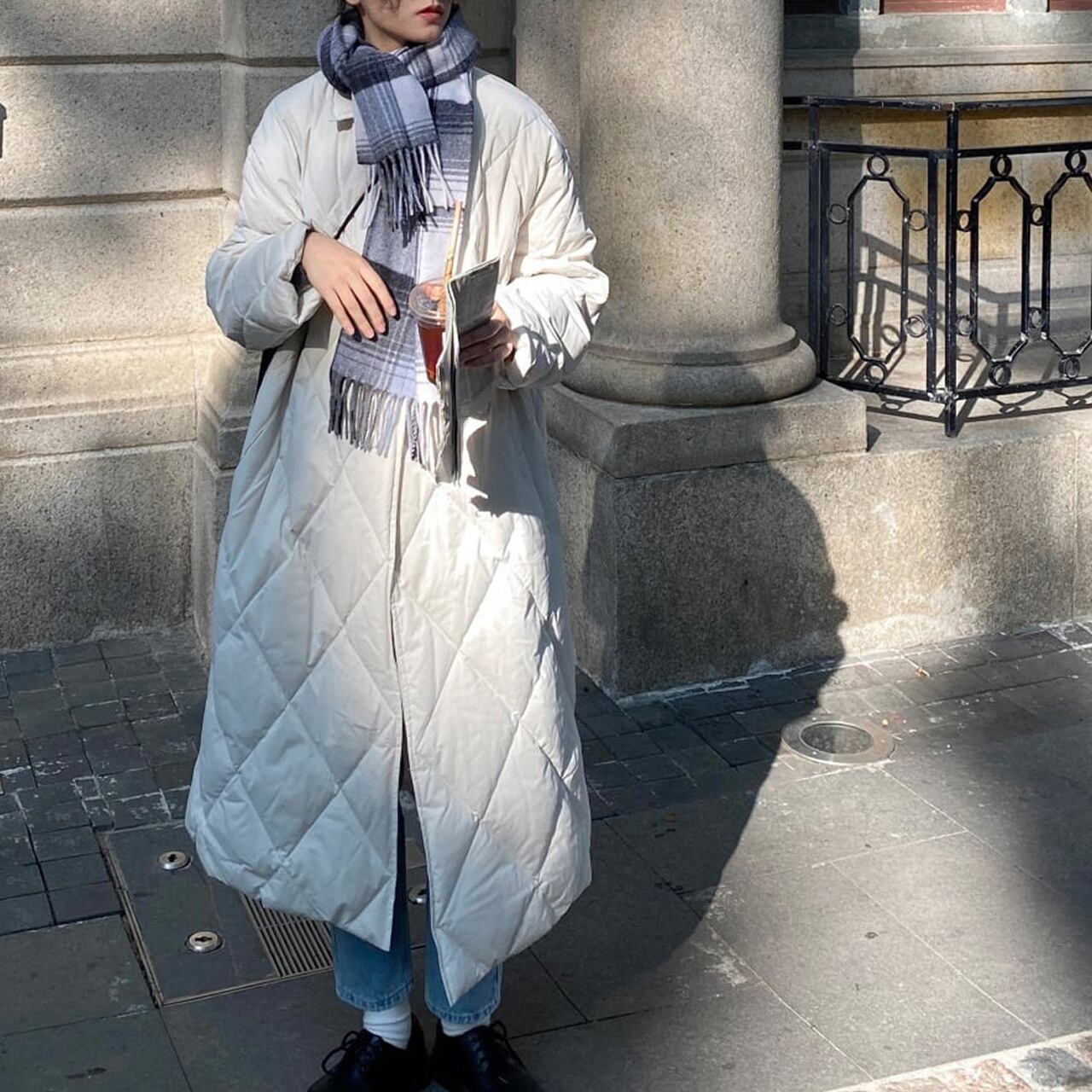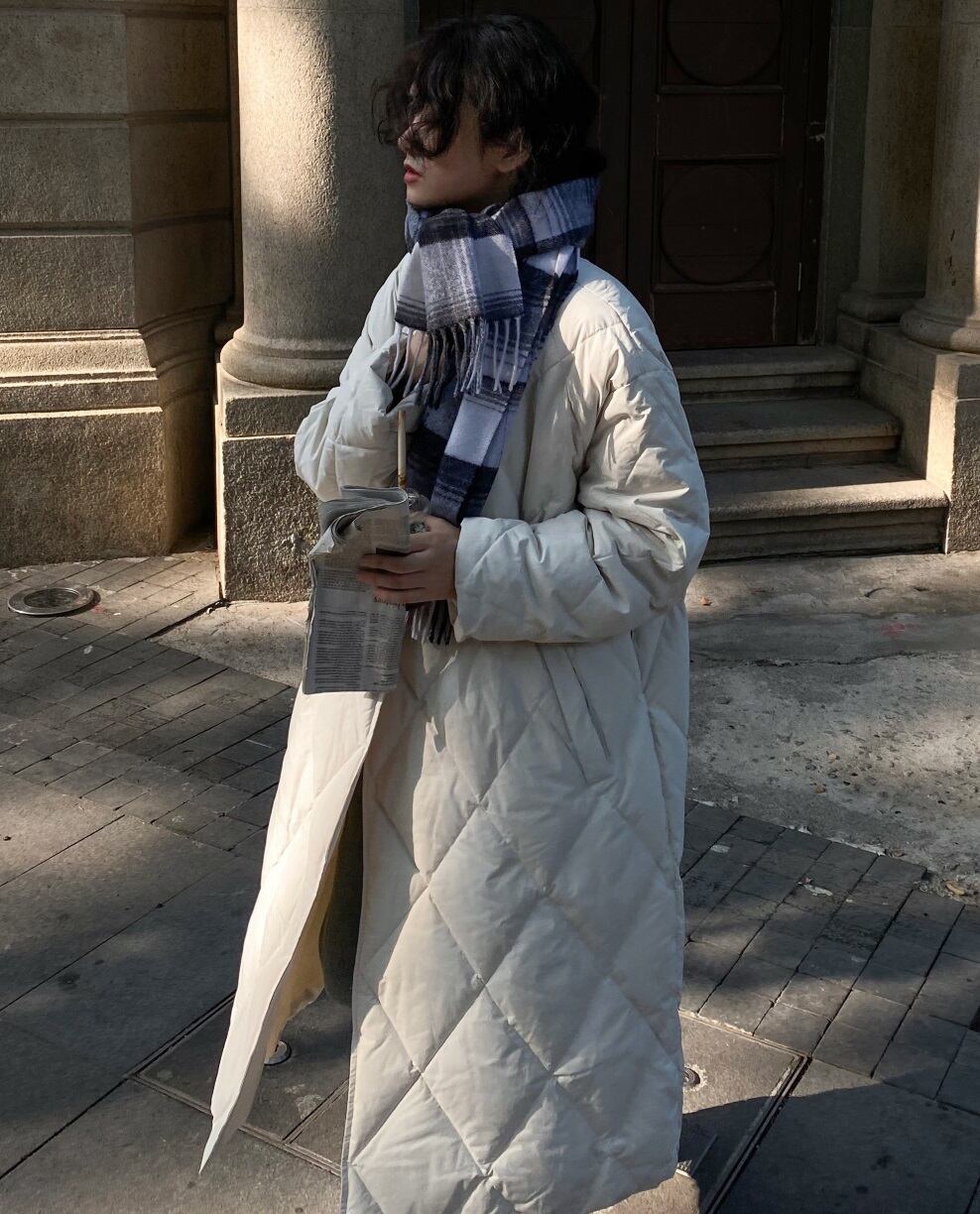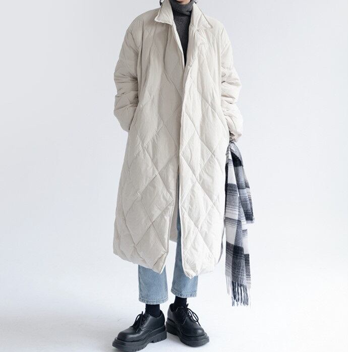 ロングな丈感で暖かく包み込んでくれるキルティングコート?