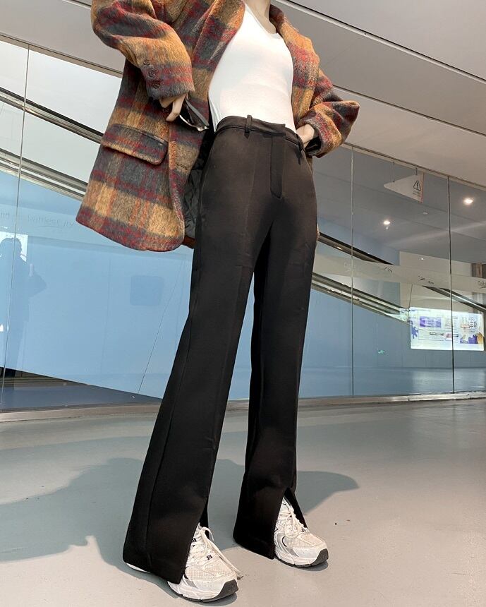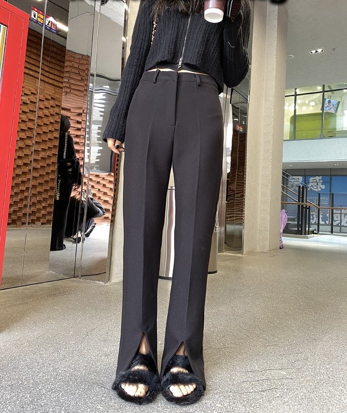 裾にスリット入りで脚長効果バツグンなストレートパンツ?