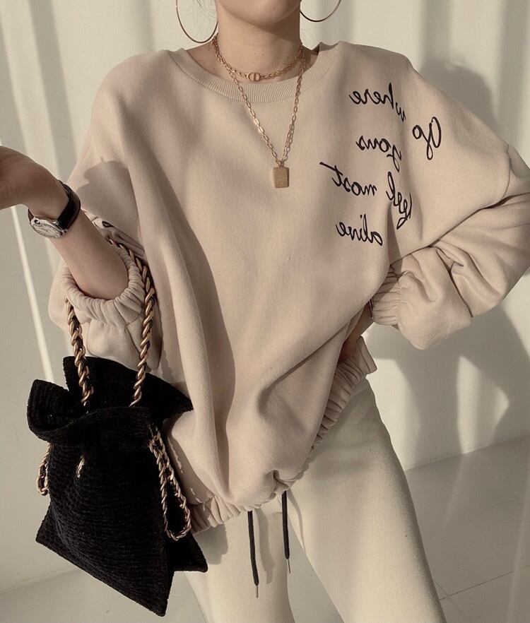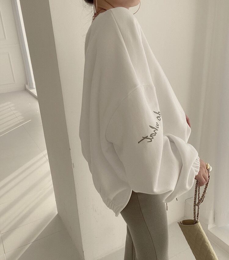 オーバーサイズ トレーナー トップス プルオーバー スウェット ミディアム丈 袖あり 長袖 ボリューム袖 ドロップショルダー ラウンドネック 襟なし かわいい 大人可愛い シンプル カジュアル 大人 おしゃれ お洒落 大人女子 こなれ感 ルーズ レター 柄 プリント 春 秋 冬 10代 20代 レディース 通勤 学生 通学 デート お出かけ 女子会 休日 旅行 着回し 普段使い 重ね着 お揃い 韓国 韓国系 大きめ ゆったり ゆる フリーサイズ 色展開 黒 ブラック 灰色 グレー オフホ 7833