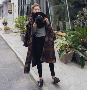 ルーズなシルエットが今っぽいチェック柄ウールコート?