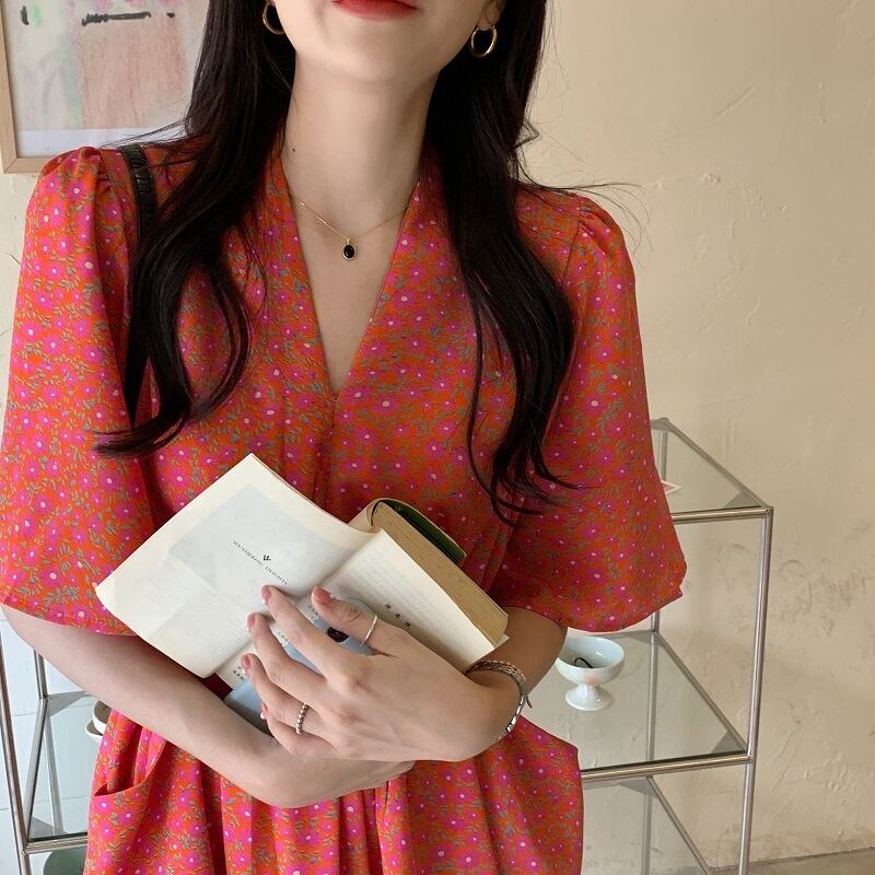 夏のお出かけ気分も高まる、小花柄のVネックワンピース?