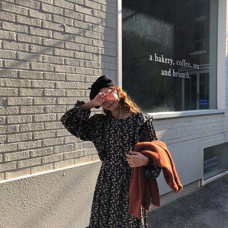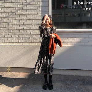 花柄 ワンピース フレアワンピース 膝下 ミモレ ミモレ丈 袖あり 長袖 ラウンドネック 襟なし フレア Aライン フリル ハイウエスト かわいい 大人可愛い カジュアル 大人 おしゃれ お洒落 レトロ 大人女子 主役級 柄 小花柄 フラワー 春 秋 10代 20代 レディース 通勤 学生 通学 デート お出かけ 女子会 旅行 着回し 普段使い 重ね着 韓国 韓国系 オルチャン ファッション コーデ サイズ ゆったり S M L XL 7001
