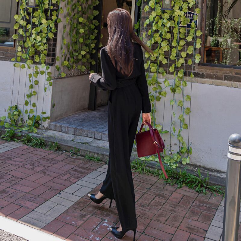 Vネック オールインワン ボトムス パンツ スーツ ワイドパンツ ロング ロング丈 袖あり 長袖 カシュクール 襟付き スリム 細身 ストレート ベルト ウエストマーク ファスナー ポケット ハイウエスト きれいめ シンプル 大人 上品 おしゃれ お洒落 大人女子 クール 無地 春 秋 入学式 入園式 卒業式 卒園式 20代 30代 40代 レディース ママ ビジネス OL 通勤 デート お出かけ 女子会 パーティー イベント 普段使い 韓国 サイズ S M L XL 7079