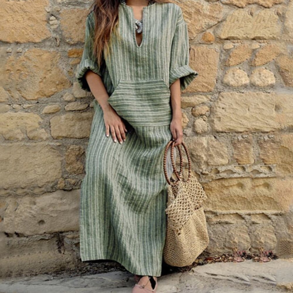 綿 リネン ストライプ柄 ワンピース ロング ロング丈 マキシ マキシ丈 アンクル丈 袖あり 7分袖 七分袖 Vネック 襟なし ポケット 麻 カジュアル 大人 おしゃれ お洒落 大人女子 こなれ感 ラフ ルーズ 個性的 柄 ストライプ シマ 春 夏 秋 30代 40代 50代 レディース ママ マタニティ デート お出かけ 公園デビュー 休日 リゾート 旅行 海 プール 普段使い 楽ちん 体系カバー ゆったり 大きいサイズ M L XL 2XL 3XL 4XL 5XL 色展開 赤 レッド 7110