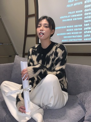 レオパード ショート丈 ニットセーター トップス セーター ショート 袖あり 長袖 ドロップショルダー 萌袖 ラウンドネック 襟なし ニット かわいい 大人可愛い きれいめ シンプル カジュアル 大人 おしゃれ お洒落 大人女子 個性的 主役級 存在感 柄 ヒョウ柄 レオパード アニマル柄 春 秋 冬 10代 20代 レディース 通勤 学生 通学 デート お出かけ 女子会 休日 旅行 着回し 普段使い 重ね着 韓国 韓国系 オルチャン 暖かい ゆったり ゆる サイズ S M L 色展開 7854
