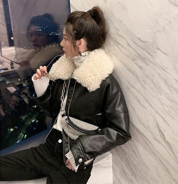 ボア襟 レザー ジャケット アウター 上着 もこもこアウター ショート ショート丈 袖あり 長袖 Vネック 襟付き もこもこ モコモコ ふわふわ ファスナー ポケット 前開き ボア 厚手 裏起毛 かわいい 大人可愛い シンプル カジュアル 大人 おしゃれ お洒落 かっこいい 大人女子 こなれ感 ボーイッシュ クール 無地 春 秋 冬 10代 20代 レディース 通勤 学生 通学 デート お出かけ 女子会 休日 旅行 着回し 普段使い 重ね着 韓国 暖かい 防寒 ゆったり サイズ S M L 7168