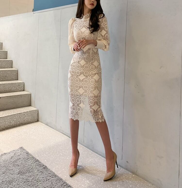 花柄 総レース ミモレ丈 ワンピース ワンピドレス 膝下 ミモレ 袖あり 長袖 パフスリーブ スタンドカラー スリム タイト 切り替えデザイン レース スリット バックスリット ファスナー ハイウエスト 透け感 かわいい 大人可愛い きれいめ 大人 上品 おしゃれ お洒落 大人女子 セクシー エレガント 主役級 フラワー 春 秋 二次会 20代 30代 レディース 通勤 学生 通学 デート お出かけ 女子会 休日 パーティー イベント 旅行 着回し 普段使い 韓国 サイズ S M L XL 7185