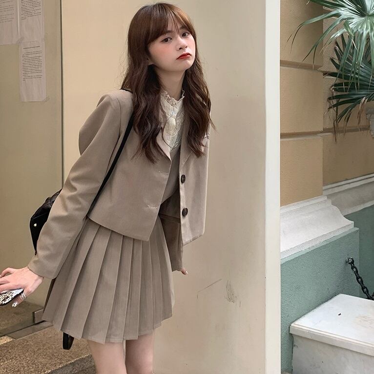単品使いもできて、セットで着れば大人かわいいプリーツスカートのカレッジ風シルエットに?