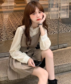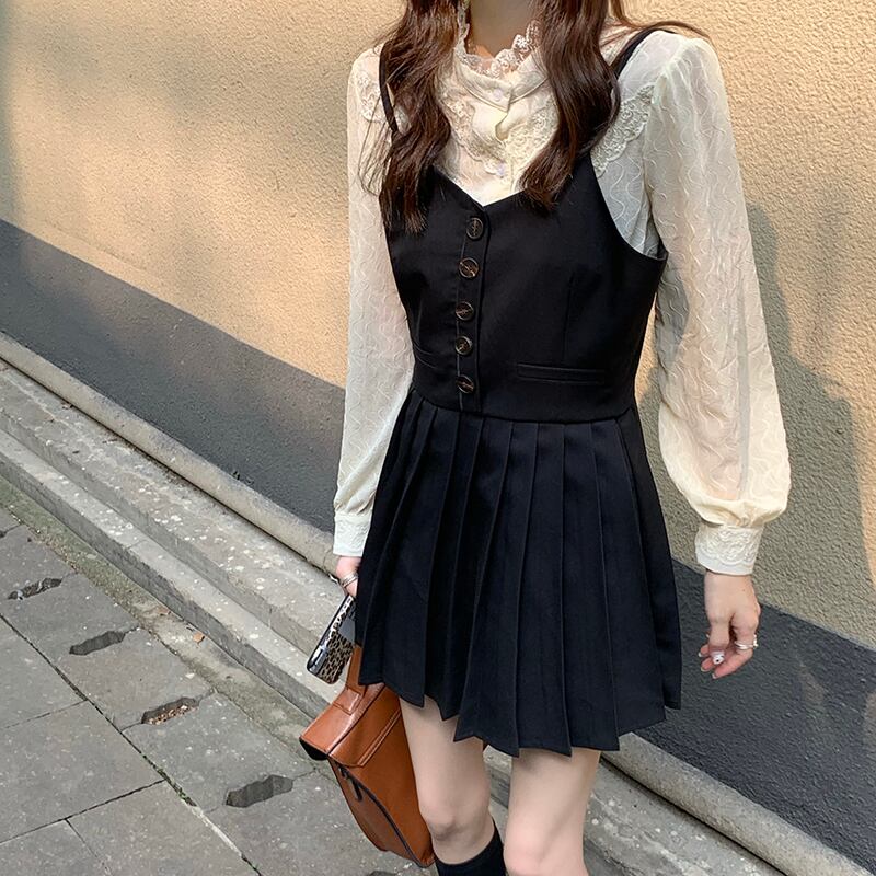セットアップ 3点セット ジャケット キャミワンピース シャツ トップス アウター ワンピース ブラウス 上着 ミニ ミニ丈 袖あり 長袖 Vネック プリーツ レース ハイウエスト 前開き 3way 上下セット スリーピース かわいい 大人可愛い シンプル カジュアル 大人 おしゃれ お洒落 大人女子 ガーリー 無地 春 秋 10代 20代 レディース 通勤 学生 通学 デート お出かけ 女子会 休日 旅行 着回し 普段使い 重ね着 韓国 サイズ S M L フリーサイズ 色展開 黒 ブ 7195