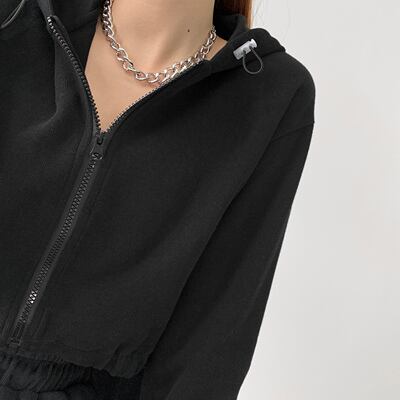 ショート丈 ジップアップ パーカー トップス ジャージ 部屋着 ショート 袖あり 長袖 フード付き ファスナー 前開き かわいい 大人可愛い シンプル カジュアル おしゃれ お洒落 かっこいい こなれ感 スポーティー ルーズ 無地 春 秋 冬 10代 20代 レディース 通勤 学生 通学 デート お出かけ お泊まり 休日 旅行 着回し 普段使い 重ね着 韓国 ゆったり サイズ S M L 色展開 白 ホワイト 黒 ブラック 灰色 ライトグレー ダークグレー ダークブラウン 青 ブルー 水色 7314