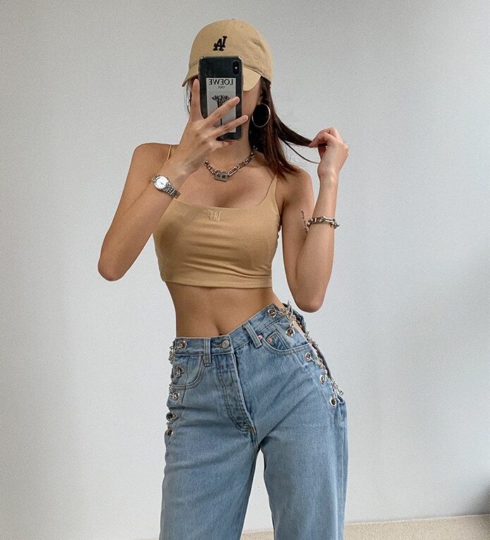 レディ感高まる細め肩紐のショート丈キャミソール?