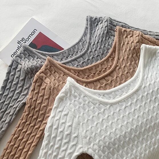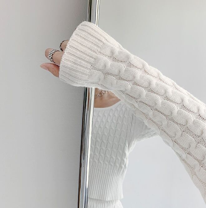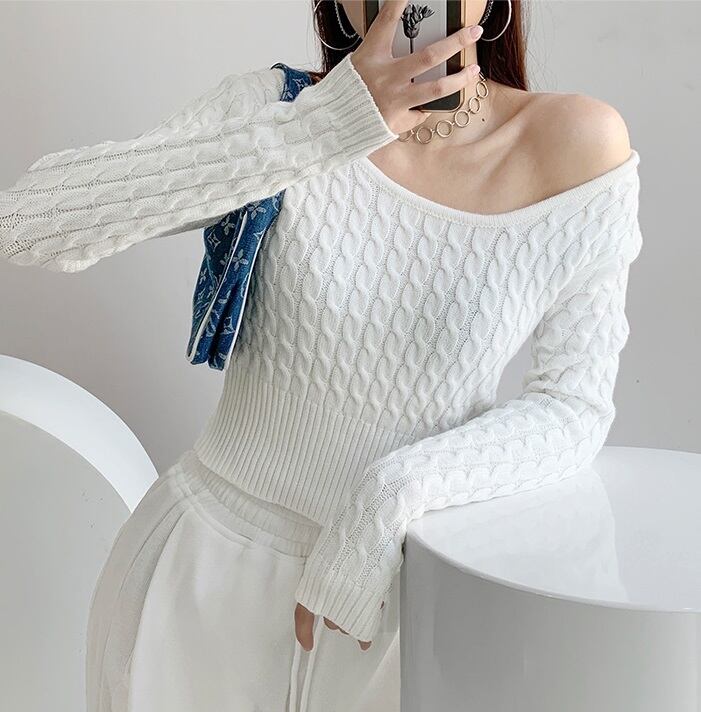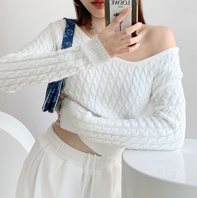 ショート丈 ニットセーター トップス セーター ショート 袖あり 長袖 Uネック ワンショルダー ワンショル 襟なし スリム タイト 細身 2way ケーブルニット ニット かわいい 大人可愛い きれいめ シンプル カジュアル 大人 おしゃれ お洒落 大人女子 無地 春 秋 冬 10代 20代 レディース 通勤 学生 通学 デート お出かけ 女子会 休日 旅行 着回し 普段使い 重ね着 韓国 韓国系 オルチャン フリーサイズ 色展開 白 ホワイト 7317
