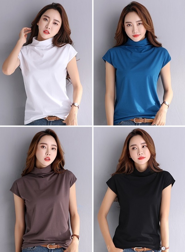 半ハイネック 半袖 Tシャツ トップス カットソー 白シャツ 白トップス ショート ショート丈 袖あり フレンチスリーブ ハイネック 襟付き かわいい 大人可愛い きれいめ シンプル カジュアル 大人 おしゃれ お洒落 大人女子 こなれ感 無地 夏 10代 20代 30代 レディース 通勤 学生 通学 デート お出かけ 公園デビュー 女子会 休日 旅行 着回し 普段使い 重ね着 韓国 ゆったり 大きいサイズ S M L XL 2XL 3XL 色展開 白 ホワイト 黒 ブラック 青 ブルー 7330