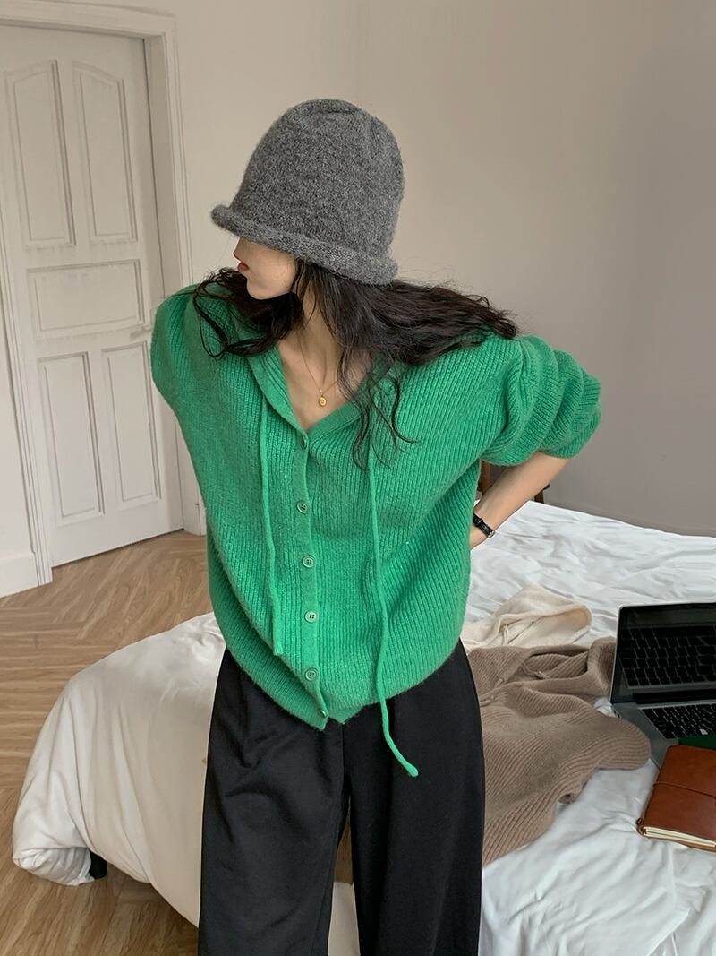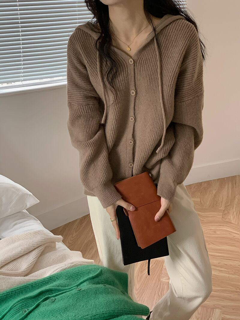 フード付き ニット カーディガン トップス ショート ショート丈 袖あり 長袖 ドロップショルダー 襟なし リブ 前開き リブニット かわいい 大人可愛い シンプル カジュアル 大人 おしゃれ お洒落 大人可愛い 大人女子 ルーズ 無地 春 秋 10代 20代 レディース 通勤 学生 通学 デート お出かけ 女子会 休日 旅行 着回し 普段使い 重ね着 韓国 韓国系 オルチャン ゆったり ゆる フリーサイズ 色展開 白 ホワイト 緑 グリーン 7869