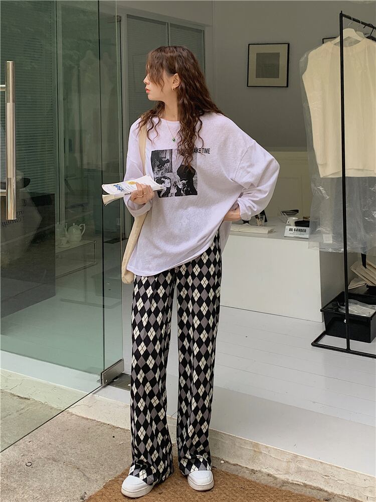 チェック柄 ハイウエスト ワイドパンツ ボトムス パンツ ズボン ストレートパンツ ロング ロング丈 ストレート ワイド ウエストゴム かわいい 大人可愛い シンプル カジュアル 大人 おしゃれ お洒落 大人女子 こなれ感 ラフ ルーズ 個性的 モード系 主役級 とろみ感 抜け感 柄 格子柄 プリント 春 秋 10代 20代 レディース 通勤 学生 通学 デート お出かけ 女子会 休日 旅行 着回し 普段使い 韓国 楽ちん モノトーン ゆったり ゆる フリーサイズ 色展開 白 ホワイト 7870