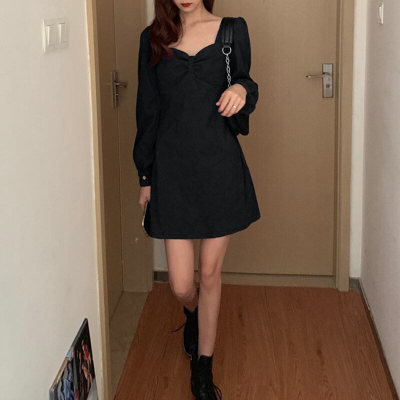 デコルテラインをキレイ魅せするスクエアネックのミニワンピ?