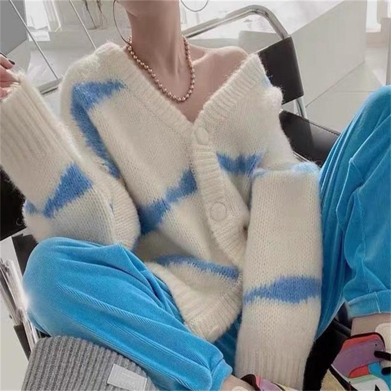 ボーダー 柄 Vネック ニット カーディガン トップス ミディアム丈 袖あり 長袖 ドロップショルダー 萌袖 襟なし 前開き かわいい 大人可愛い シンプル カジュアル 大人 おしゃれ お洒落 大人女子 こなれ感 ルーズ 抜け感 シマ 春 秋 10代 20代 レディース 通勤 学生 通学 デート お出かけ 女子会 休日 旅行 着回し 普段使い 重ね着 韓国 韓国系 オルチャン 暖かい ゆったり ゆる 大きいサイズ S M L XL 2XL 3XL 色展開 黒 ブラック 青 ブルー 緑 グリーン ピンク