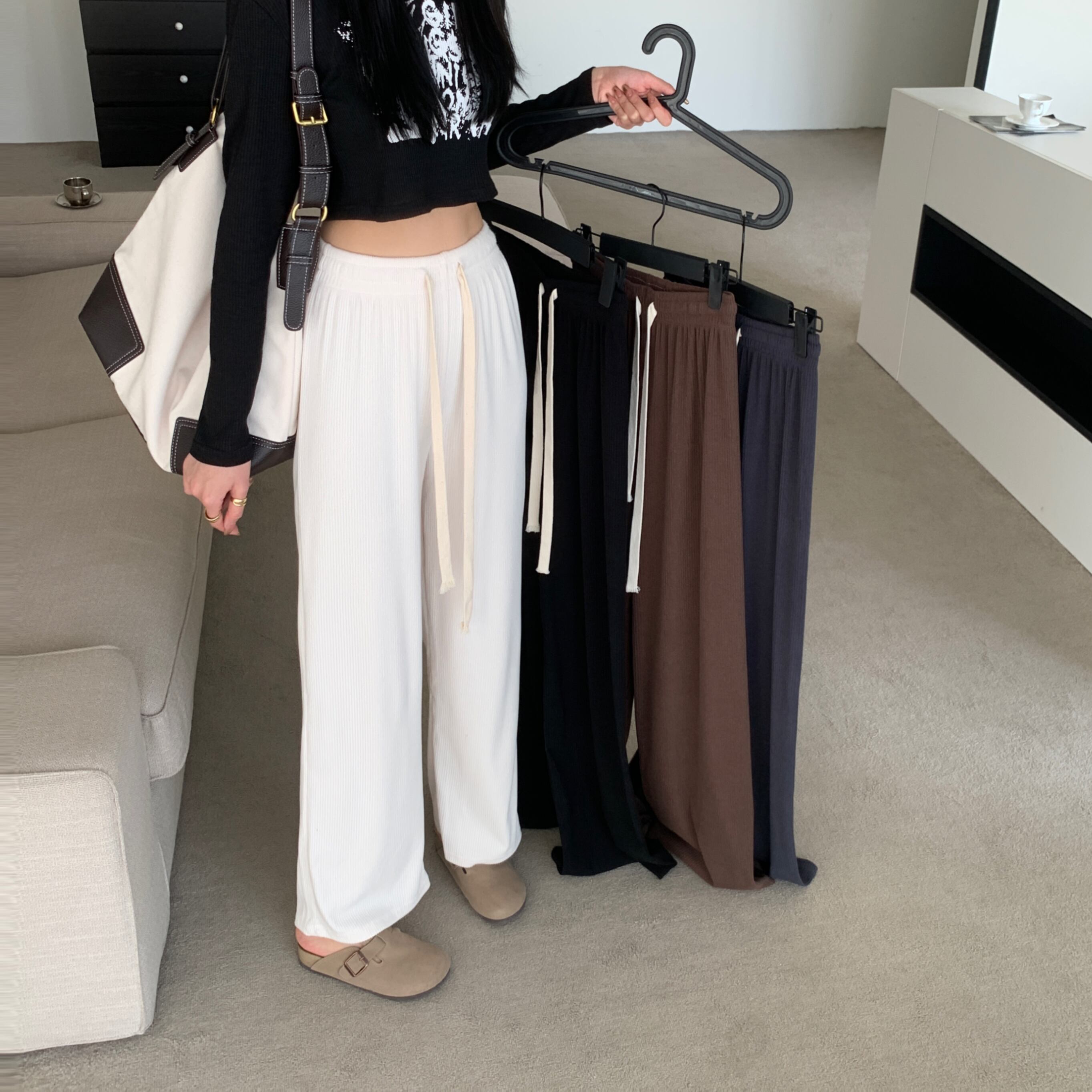 ウエストバンディングで楽ちん&ルーズなかわいさが魅力のリブニットパンツ?