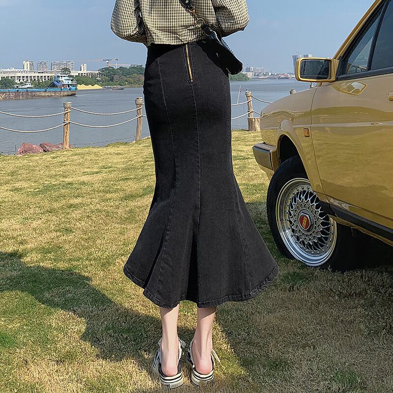 デニム マーメイド フレアスカート ボトムス ロングスカート 膝下 ミモレ ミモレ丈 フレア Aライン スリット ファスナー ハイウエスト 綿 かわいい 大人可愛い シンプル カジュアル 大人 おしゃれ お洒落 大人女子 無地 春 夏 秋 冬 オールシーズン 10代 20代 30代 レディース 通勤 学生 通学 デート お出かけ 女子会 休日 旅行 着回し 普段使い 重ね着 韓国 韓国系 オルチャン 脚長 定番 小さいサイズ XS S M L XL 色展開 黒 ブラック 水色 ライトブルー