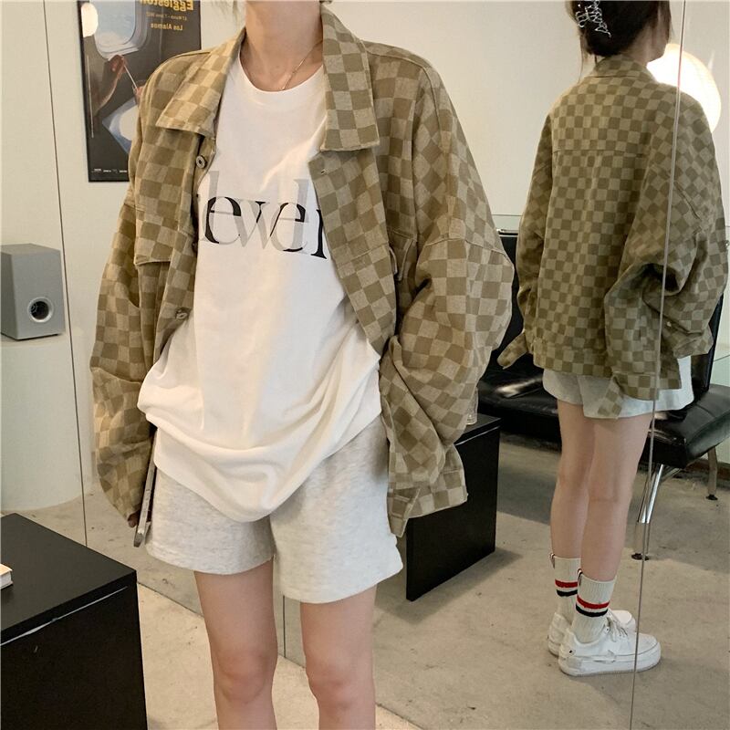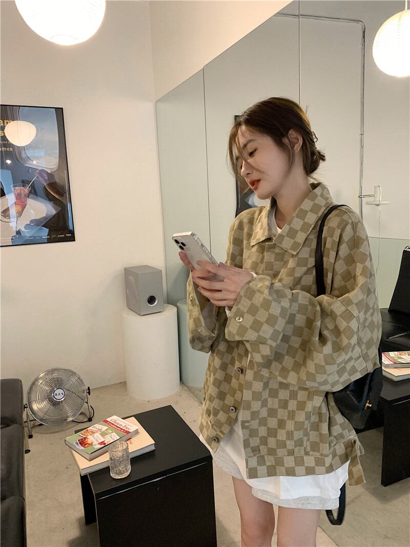 オーバーサイズ チェッカー柄 長袖 シャツ トップス ショート ショート丈 袖あり 襟付き ポケット 前開き かわいい 大人可愛い シンプル カジュアル 大人 おしゃれ お洒落 大人女子 こなれ感 ルーズ 個性的 柄 チェック柄 春 秋 10代 20代 レディース 通勤 学生 通学 デート お出かけ 女子会 休日 旅行 着回し 普段使い 重ね着 韓国 韓国系 オルチャン ゆったり ゆる フリーサイズ 色展開 カーキ ピンク