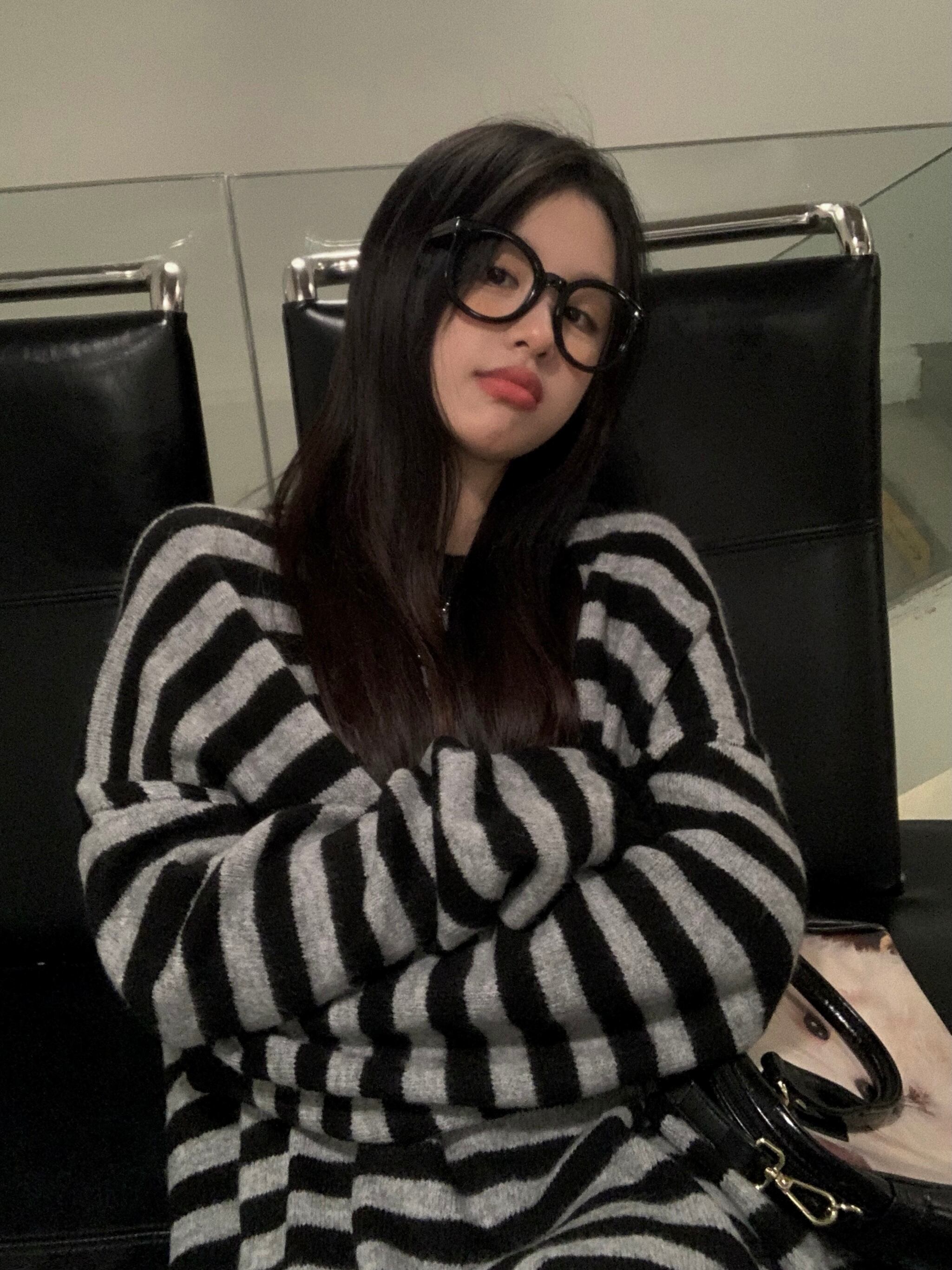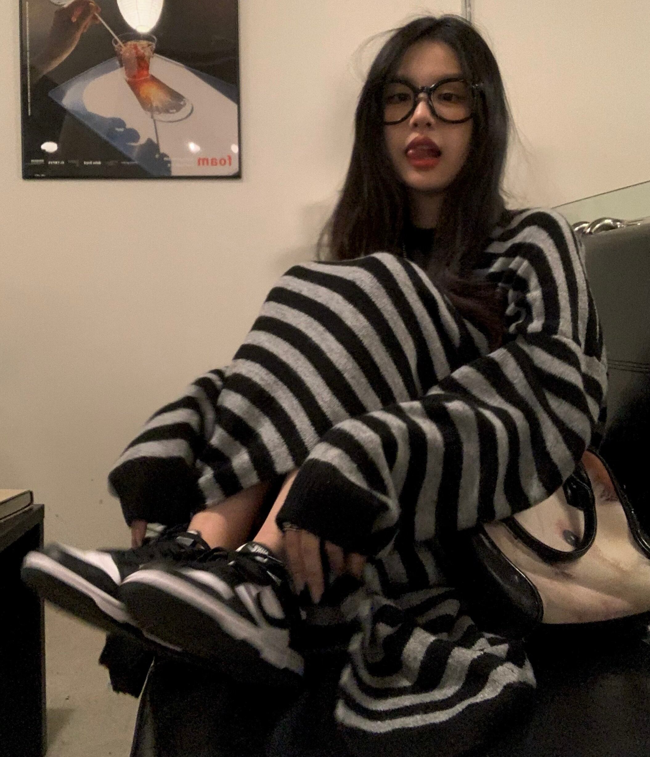 ルーズ感たっぷりなボーダー柄のセーターワンピース。