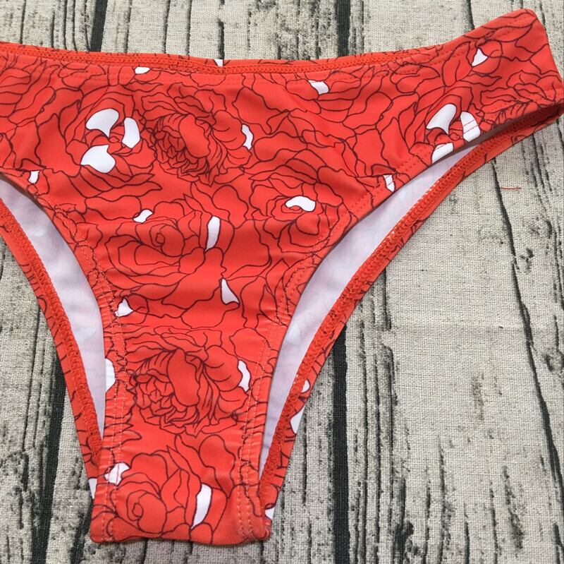 レッドカラーが映える花柄のバンドゥビキニ上下セット水着。