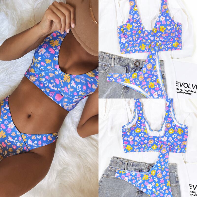 小花柄 ビスチェ ビキニ 上下セット 水着 2点セット スイムウェア タンキニ セパレート ワイヤー パッド付き ハイレグ ハイウエスト 谷間魅せ セット ツーピース かわいい 大人可愛い カジュアル 華やか 大人 大人っぽい おしゃれ お洒落 主役級 存在感 女っぽ キュート ガーリー 個性的 柄 花柄 フラワー 10代 20代 レディース 春 夏 海 ビーチ プール リゾート 旅行 美脚 脚長 サイズ S M L 青 ブルー