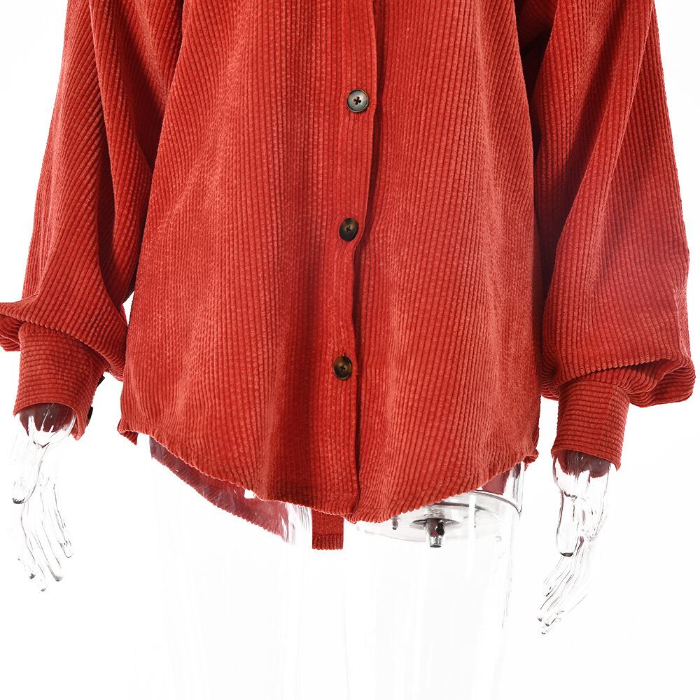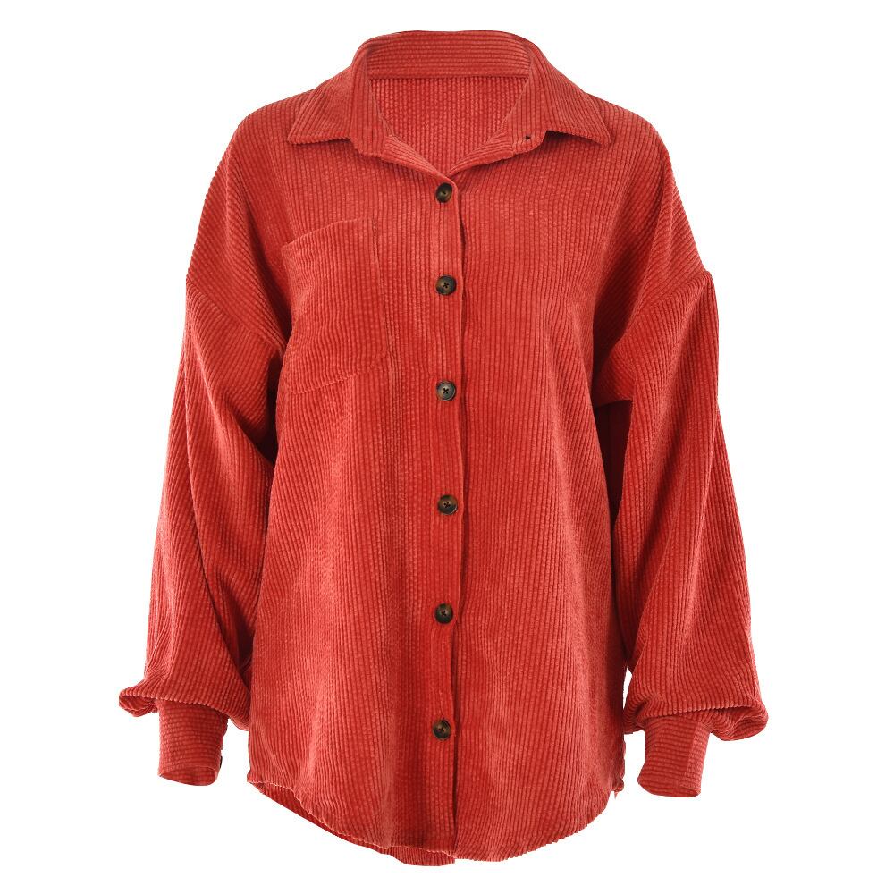 コーデュロイ ルーズ シャツ トップス ショート ショート丈 袖あり 長袖 ドロップショルダー 萌袖 襟付き アシンメトリー ポケット リブ ポリエステル かわいい 大人可愛い シンプル カジュアル 大人 おしゃれ お洒落 大人女子 こなれ感 無地 春 秋 10代 20代 レディース 通勤 学生 通学 デート お出かけ 女子会 休日 旅行 着回し 普段使い 重ね着 ゆったり ゆる サイズ S M L 色展開 茶色 ダークブラウン オレンジ