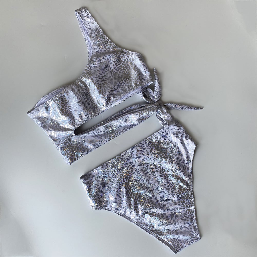 アニマル柄 タンキニ 水着 上下セット 2点セット ビキニ スイムウェア セパレート ビスチェ ワンショルダー ワンショル ノンワイヤー パッド付き リボン ハイウエスト 谷間魅せ 盛れる ツーピース 大人可愛い セクシー カジュアル ゴージャス 華やか 大人 おしゃれ お洒落 主役級 存在感 個性的 エキゾチック パイソン 柄 ヒョウ柄 レオパード 10代 20代 レディース 春 夏 海 ビーチ プール リゾート 旅行 着痩せ 光沢 メタリック サイズ S M L 色展開 緑 グリーン 銀色 シルバー