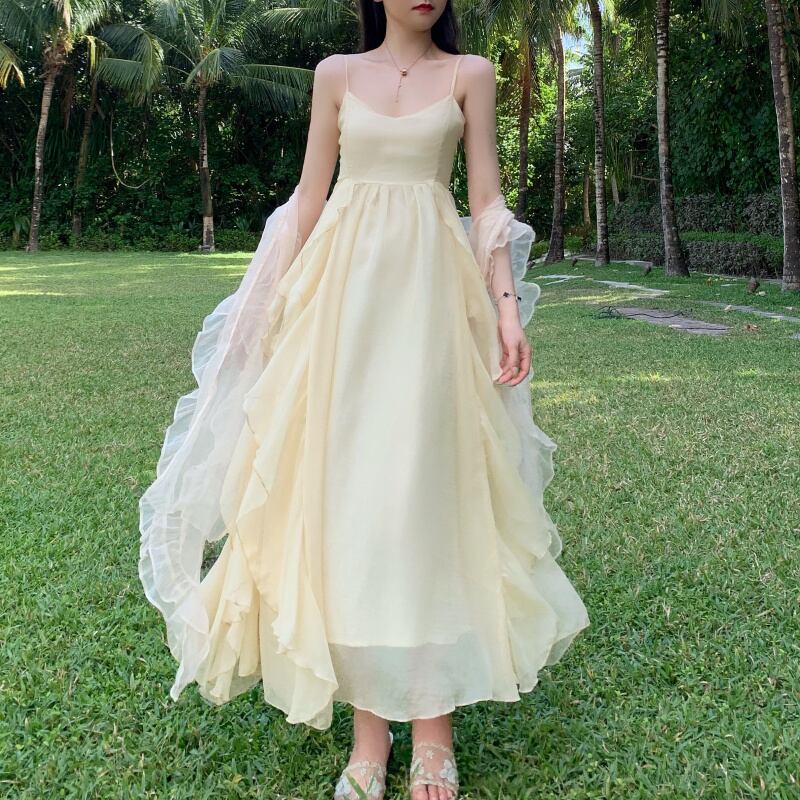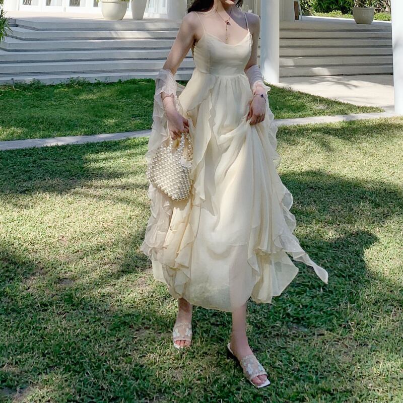 セットアップ シフォン キャミソールワンピース カーディガン 2点セット トップス ワンピース ロング丈 マキシ丈 ノースリーブ 長袖 Vネック フレア 切り替えデザイン フリル ハイウエスト 前開き 透け感 シースルー ツーピース かわいい 大人可愛い シンプル 大人 おしゃれ お洒落 大人女子 主役級 無地 春 夏 秋 10代 20代 レディース 学生 通学 デート お出かけ 休日 リゾート 旅行 海 着回し 普段使い 重ね着 サイズ S M L XL フリーサイズ 色展開 白 ホワイト アプリコット
