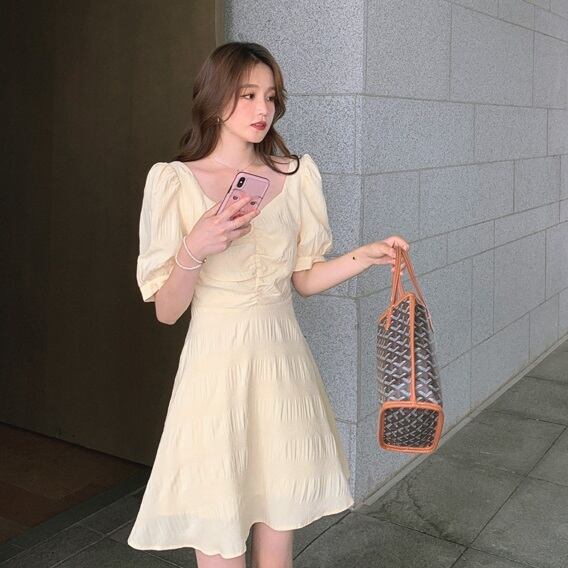 背中開き ミニ丈 ミモレ丈 ワンピース フレアワンピース ミニ ミモレ 袖あり 半袖 パフスリーブ Vネック 襟なし フレア スリム 細身 Aライン 切り替えデザイン バックシャン バックコンシャス ハイウエスト かわいい 大人可愛い シンプル カジュアル 大人 おしゃれ お洒落 レトロ 大人女子 主役級 無地 夏 10代 20代 レディース 通勤 学生 通学 デート お出かけ 女子会 休日 リゾート 旅行 海 プール 着回し 普段使い 重ね着 韓国 韓国系 オルチャン サイズ S M L アプリコット
