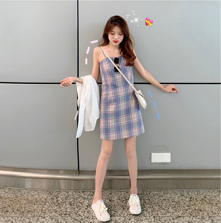 チェック柄 ミニ丈 キャミソールワンピース キャミソール ワンピース ミニ 膝上 袖なし ノースリーブ 襟なし Aライン かわいい カジュアル おしゃれ お洒落 ラブリー キュート ガーリー 主役級 柄 格子柄 夏 10代 20代 レディース 通勤 学生 通学 デート お出かけ 女子会 休日 旅行 着回し 普段使い 重ね着 韓国 韓国系 オルチャン ファッション 大きいサイズ M L XL 2XL 青 ブルー