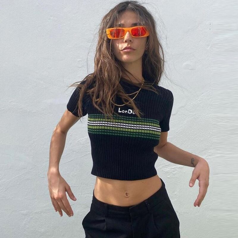 ショート丈 サマーニット トップス Tシャツ ニットソー ショート 袖あり 半袖 ラウンドネック 襟なし スリム タイト 細身 リブ リブニット ニット かわいい 大人可愛い カジュアル 大人 おしゃれ お洒落 かっこいい レトロ 大人女子 メンズライク ボーイッシュ 個性的 柄 ボーダー シマ ロゴ 春 夏 10代 20代 レディース 通勤 学生 通学 デート お出かけ 女子会 休日 旅行 着回し 普段使い 重ね着 サイズ S M L 黒 ブラック