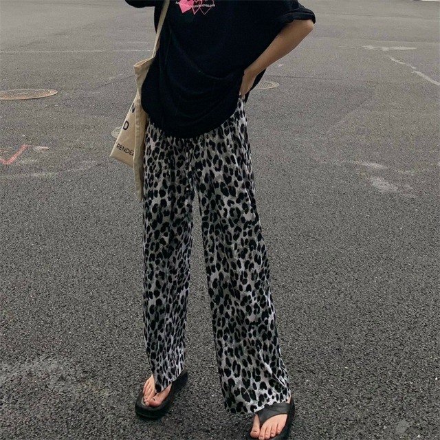 レオパード ロング丈 ハイウエスト ワイドパンツ ボトムス パンツ ズボン 部屋着 ストレートパンツ ロング ストレート ワイド ハイウエスト リブ ウエストゴム 伸縮性 かわいい 大人可愛い カジュアル おしゃれ お洒落 大人女子 こなれ感 ラフ ルーズ 個性的 クール 主役級 柄 ヒョウ柄 レオパード アニマル柄 春 夏 秋 10代 20代 レディース 通勤 学生 通学 デート お出かけ 女子会 お泊まり 休日 旅行 着回し 普段使い 楽ちん モノトーン ゆったり ゆる フリーサイズ レオパード柄