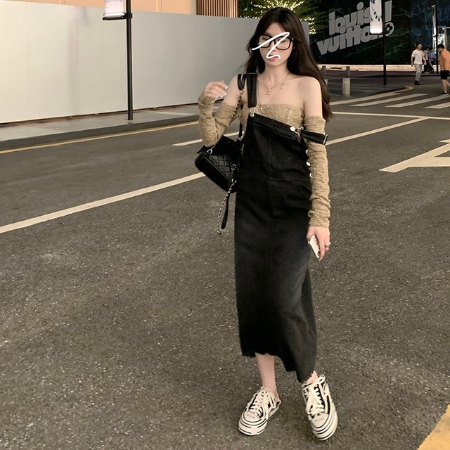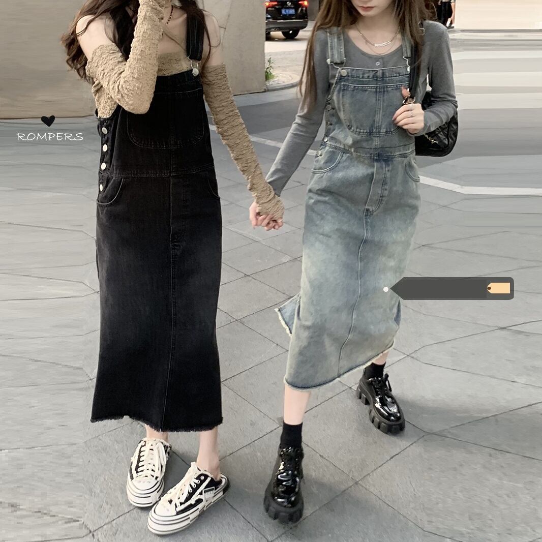 ミモレ丈 デニム サロペット スカート ボトムス デニムスカート 膝下 ミモレ 袖なし ノースリーブ スリット バックスリット 切り替えデザイン ポケット ハイウエスト かわいい 大人可愛い シンプル カジュアル 大人 おしゃれ お洒落 レトロ 大人女子 こなれ感 無地 春 夏 秋 冬 オールシーズン 10代 20代 レディース 通勤 学生 通学 デート お出かけ 女子会 休日 旅行 着回し 普段使い 重ね着 お揃い 双子 韓国 コーデ 定番 ゆったり サイズ S M L 色展開 黒 ブラック 青 ブルー