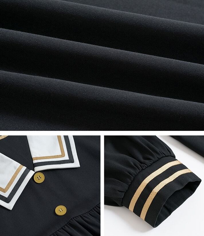 大きめ襟 長袖 ワンピース 膝丈 ひざ丈 袖あり Vネック 襟付き Aライン 切り替えデザイン ハイウエスト かわいい シンプル カジュアル おしゃれ お洒落 レトロ 個性的 無地 柄 春 秋 10代 20代 レディース 学生 通学 デート お出かけ 女子会 休日 旅行 着回し 普段使い ゆったり サイズ S M ネイビー