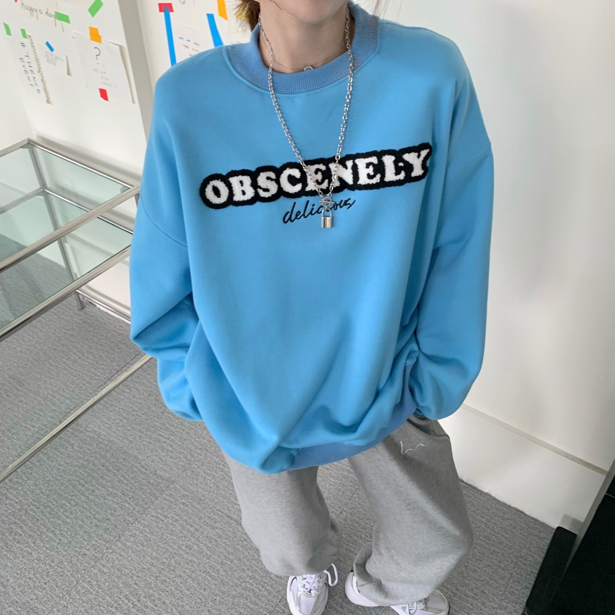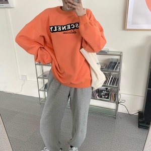 カラバリ 英字 ロゴ入り トレーナー トップス ミディアム丈 袖あり 長袖 ドロップショルダー 萌袖 ラウンドネック 襟なし 刺繍 かわいい カジュアル 大人 おしゃれ お洒落 こなれ感 ルーズ ロゴ 春 秋 10代 20代 レディース 通勤 学生 通学 デート お出かけ 女子会 休日 旅行 着回し 普段使い 重ね着 お揃い 双子 韓国 韓国系 オルチャン ファッション 春カラー ゆったり ゆる サイズ S M L 色展開 灰色 グレー ピンク オレンジ 水色 レイクブルー