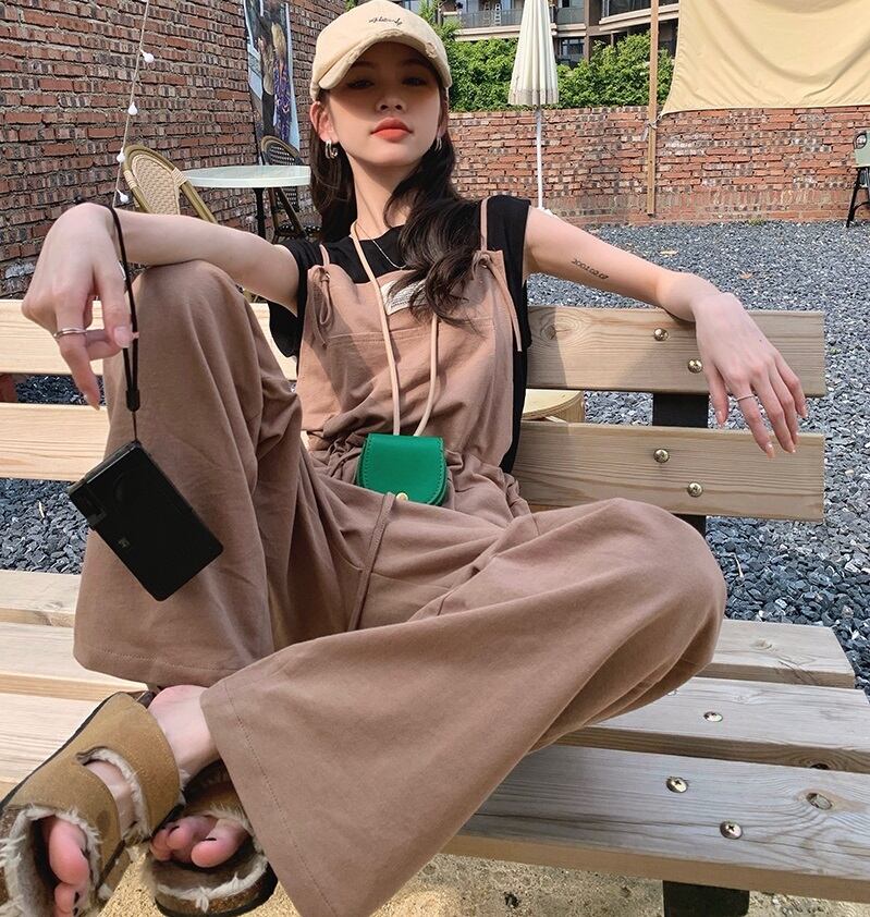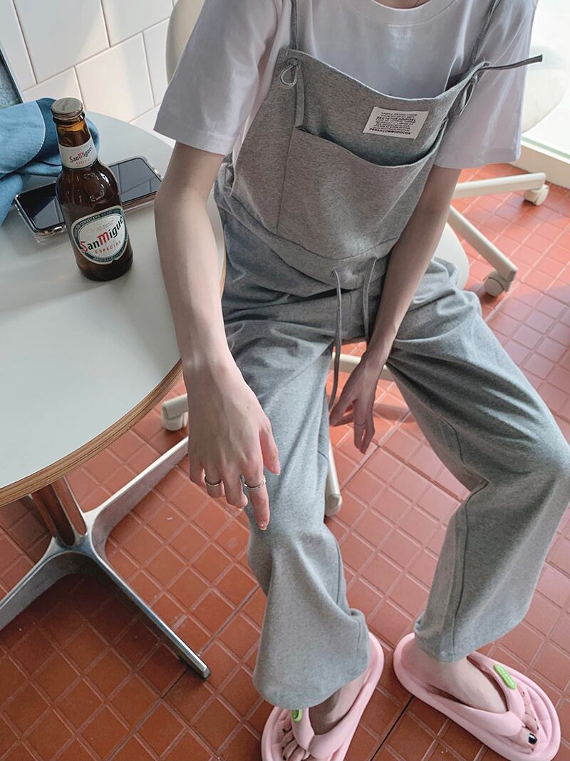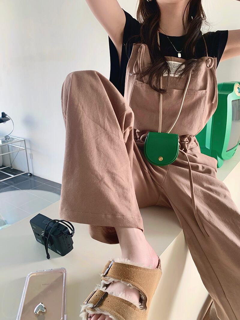 ロング丈 ルーズ サロペット ボトムス パンツ ズボン ワイドパンツ ロング 袖なし ノースリーブ 襟なし ストレート ワイド ウエストリボン ポケット ハイウエスト かわいい 大人可愛い シンプル カジュアル おしゃれ お洒落 大人可愛い こなれ感 ラフ 抜け感 無地 ロゴ 春 夏 秋 10代 20代 レディース 通勤 学生 通学 デート お出かけ 女子会 お泊まり 休日 アウトドア 旅行 着回し 普段使い 重ね着 韓国 楽ちん 脚長 ゆったり フリーサイズ 色展開 茶色 ブラウン 灰色 グレー