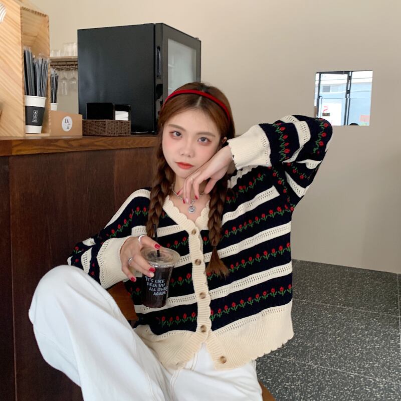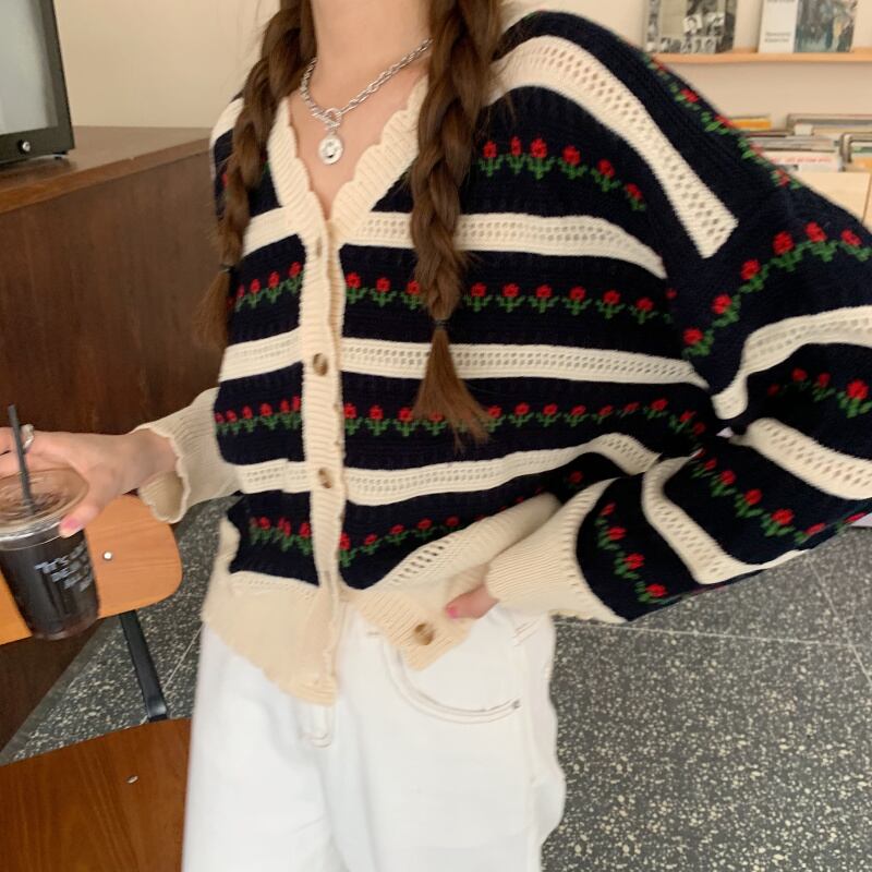 花柄 Vネック 透かし編み ニットカーディガン トップス カーディガン ショート ショート丈 袖あり 長袖 襟なし 前開き クロシェ ニット かわいい 大人可愛い カジュアル 大人 おしゃれ お洒落 レトロ 大人女子 ガーリー ルーズ 個性的 主役級 柄 小花柄 フラワー ボーダー 春 秋 10代 20代 レディース 通勤 学生 通学 デート お出かけ 女子会 休日 旅行 着回し 普段使い 重ね着 韓国 韓国系 オルチャン ゆったり フリーサイズ マルチカラー