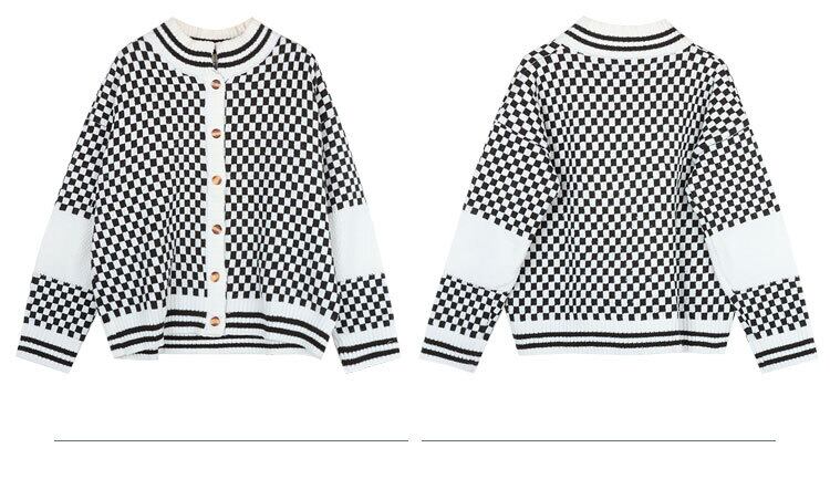 チェッカー柄 ニット カーディガン トップス ミディアム丈 袖あり 長袖 ドロップショルダー 襟付き スタンドカラー ハイネック 切り替えデザイン 前開き かわいい 大人可愛い カジュアル 大人 おしゃれ お洒落 かっこいい 大人女子 こなれ感 メンズライク ボーイッシュ ルーズ 個性的 クール モード系 存在感 柄 チェック柄 格子柄 春 秋 10代 20代 レディース 通勤 学生 通学 デート お出かけ 女子会 休日 旅行 着回し 普段使い 重ね着 韓国 ゆったり ゆる フリーサイズ チェッカー柄