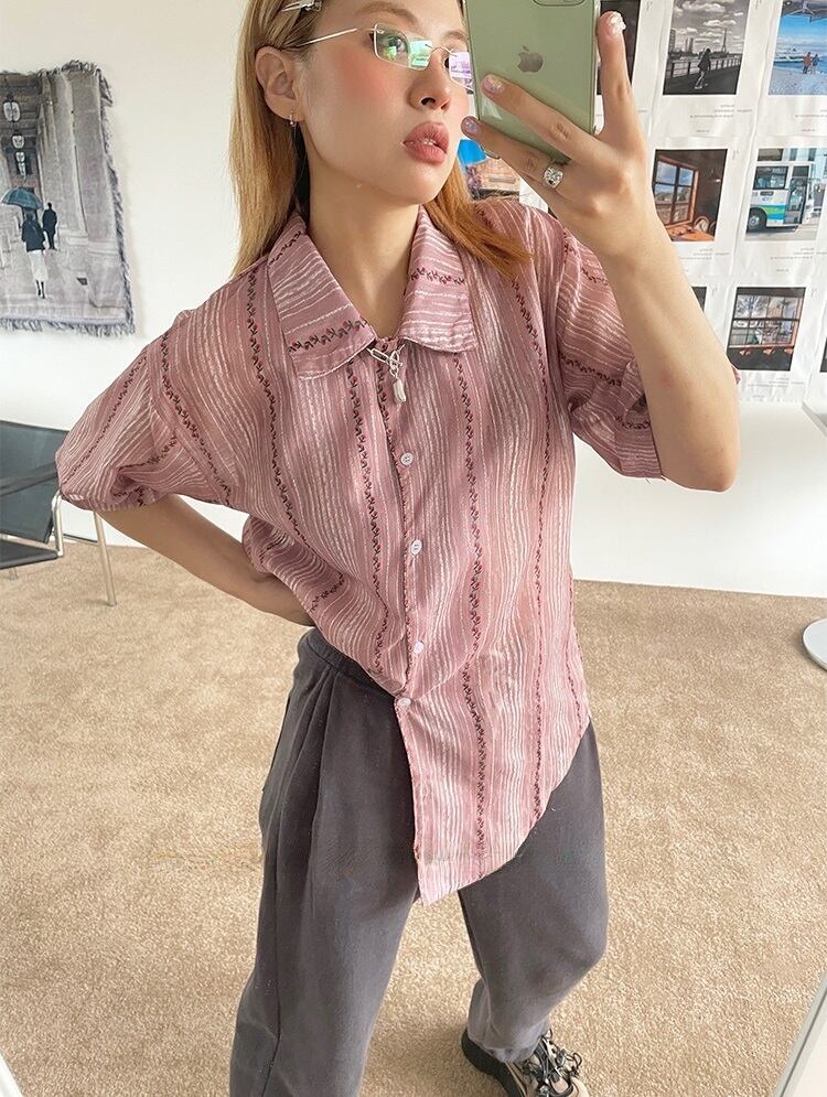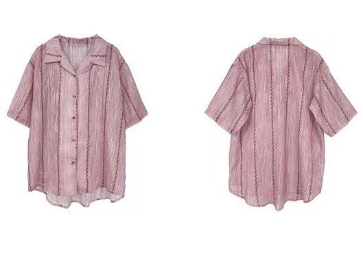 小花柄 半袖 シャツ トップス ミディアム丈 袖あり 襟付き 前開き 綿 かわいい 大人可愛い カジュアル 大人 おしゃれ お洒落 大人女子 ルーズ 個性的 柄 花柄 フラワー ストライプ シマ 夏 10代 20代 レディース 通勤 学生 通学 デート お出かけ 女子会 休日 旅行 着回し 普段使い 重ね着 韓国 韓国系 オルチャン ゆったり サイズ S ピンク