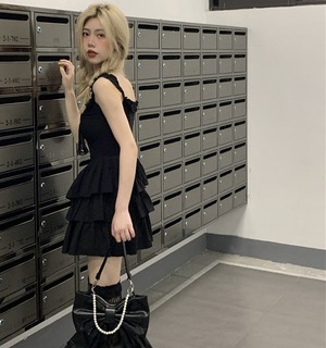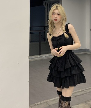 キャミソール ティアードワンピース ワンピース ワンピドレス ミニ ミニ丈 膝上 袖なし ノースリーブ スクエアネック 襟なし スリム タイト 細身 Aライン 切り替えデザイン フリル リボン ハイウエスト 伸縮性 かわいい おしゃれ お洒落 ラブリー キュート ガーリー クール モード系 主役級 無地 夏 10代 20代 レディース 通勤 学生 通学 デート お出かけ 女子会 休日 イベント 旅行 着回し 普段使い 重ね着 韓国 韓国系 オルチャン モノトーン サイズ S M L 黒 ブラック
