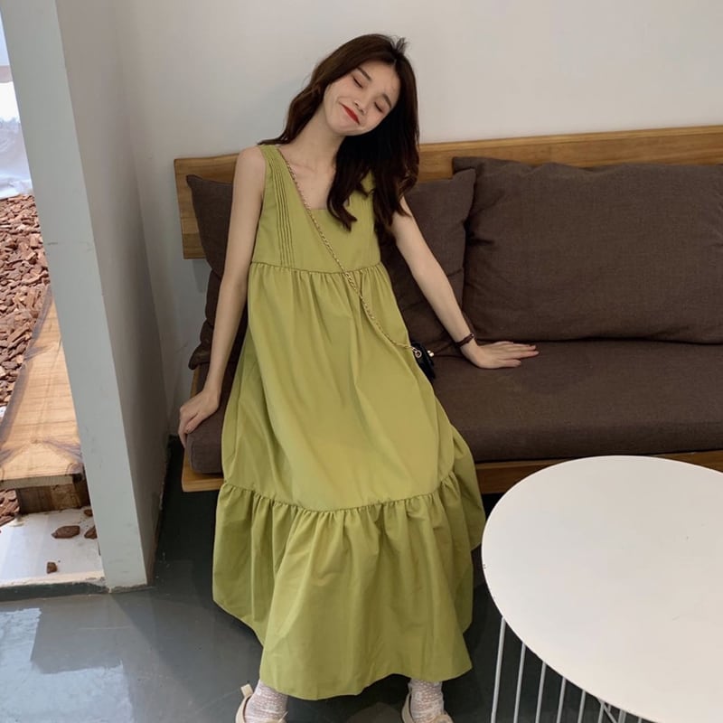 ティアードワンピース キャミソールワンピース ワンピース 膝下 ミモレ ミモレ丈 袖なし ノースリーブ スクエアネック 襟なし フレア Aライン 切り替えデザイン ハイウエスト かわいい 大人可愛い シンプル カジュアル 大人 おしゃれ お洒落 大人女子 ルーズ 無地 夏 10代 20代 30代 レディース ママ マタニティ 通勤 学生 通学 デート お出かけ 公園デビュー 女子会 休日 旅行 着回し 普段使い 重ね着 韓国 韓国系 オルチャン ゆったり フリーサイズ 色展開 黒 ブラック 緑 グリーン